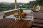 On the ground level we find the spacious living room with a fireplace, the dining area and a fully equipped kitchen. A hallway leads to the linen room, a bathroom and a bedroom. On the upper level the master bedroom with its own large veranda and bathroom are placed, as well as an elegant office and a large terrace. The third bedroom is on the wooden attic.